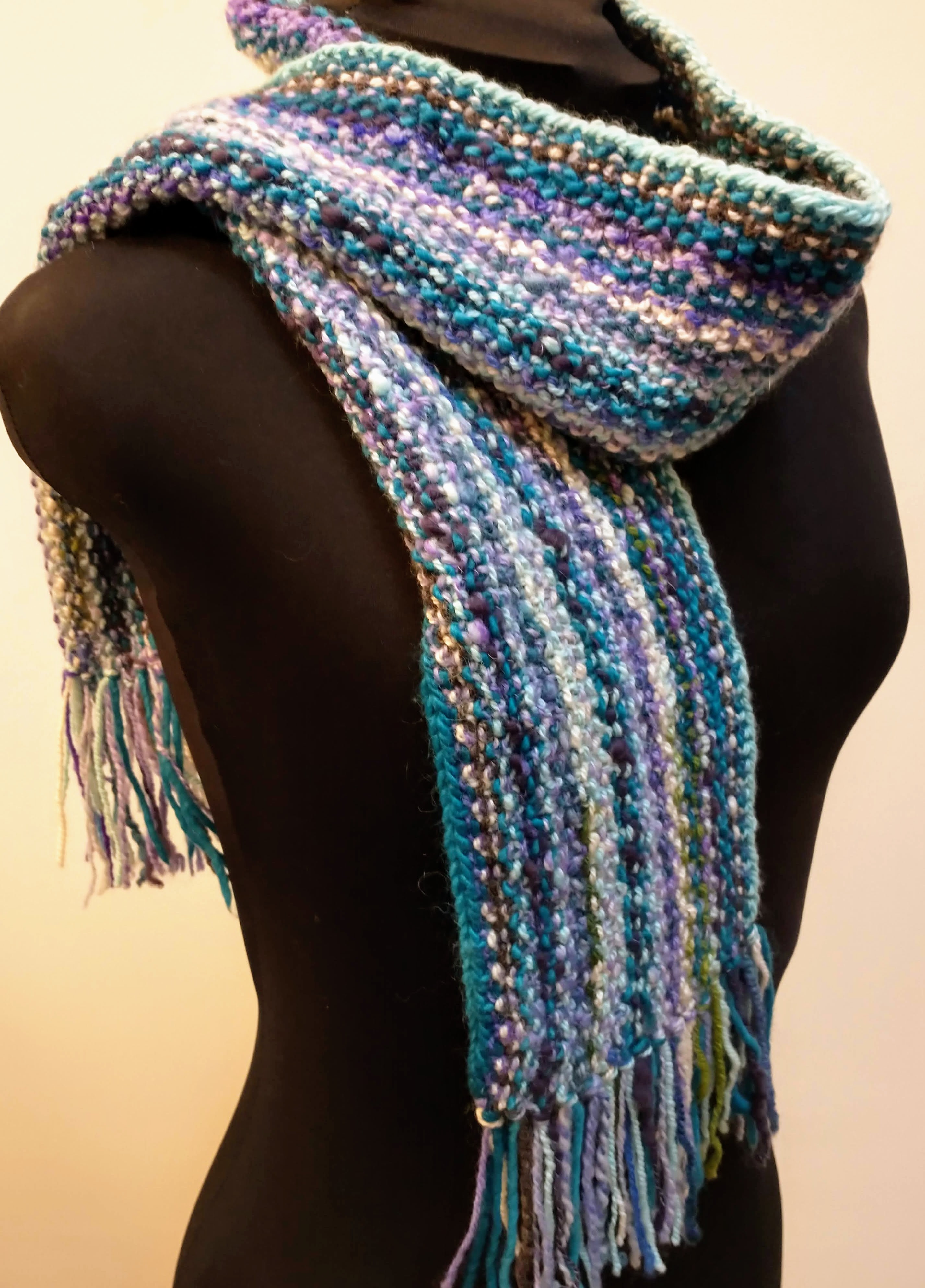 This is a great project for using up those small skeins of handspun yarn and leftover yarn from other knitting projects. I haven't fulled these scarves, but I might give that a try on one of the longest ones. I will have all my scarves listed in my online shop.